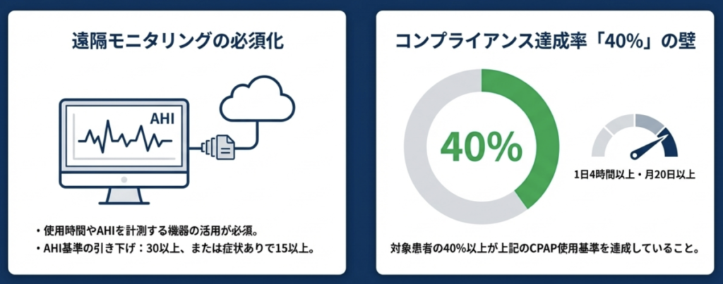 現場感のある言い方をすると、今後は「CPAPを始めてもらう」だけでは足りず、続けてもらうための導線、説明、フォロー、データ確認の仕組みまで含めて診療体制として評価される時代に入った、ということです。