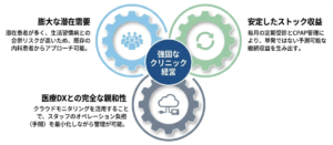 そのなかでSAS診療は、生活習慣病の患者さんと親和性が高く、CPAPによる継続管理というストック型の診療収益につながる特性があります。