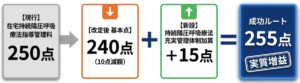 ですが今回、新たに充実管理体制加算15点が新設されました。つまり、必要な体制を整え、要件を満たせば、240点に15点が加算され、結果として255点の算定が可能となります。数字だけ見れば、単なるマイナス改定ではなく、体制整備の有無によって評価が分かれる改定と捉えることができます。